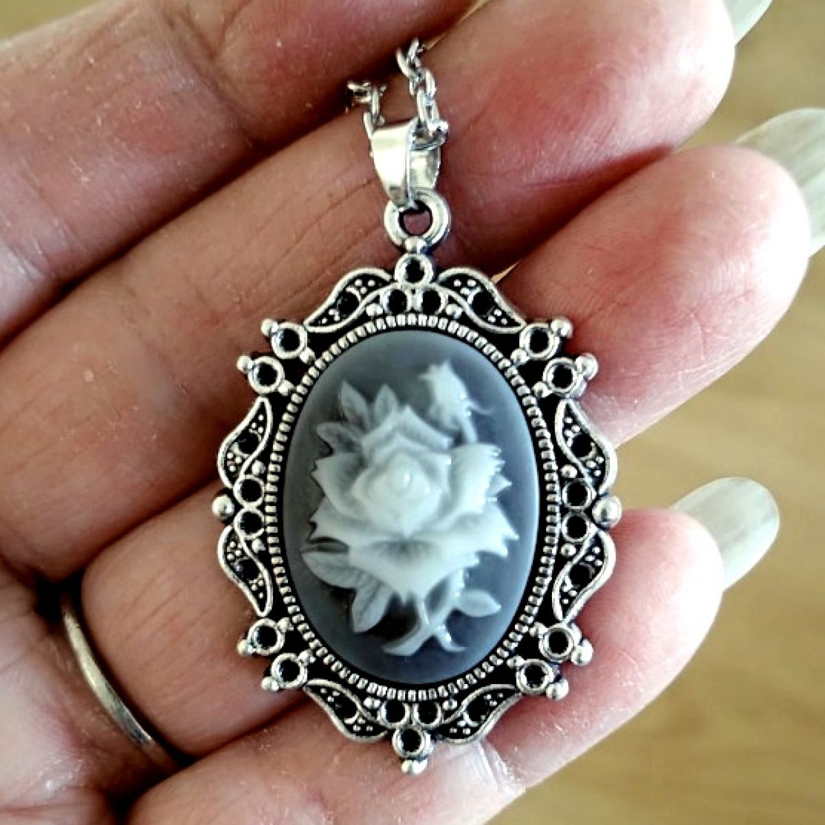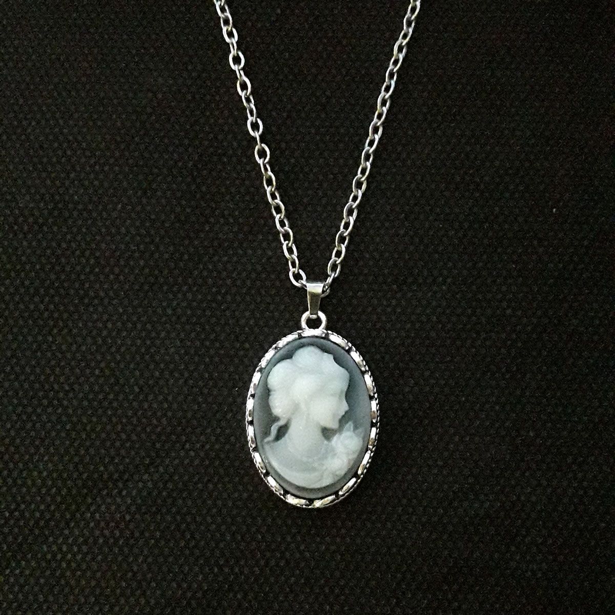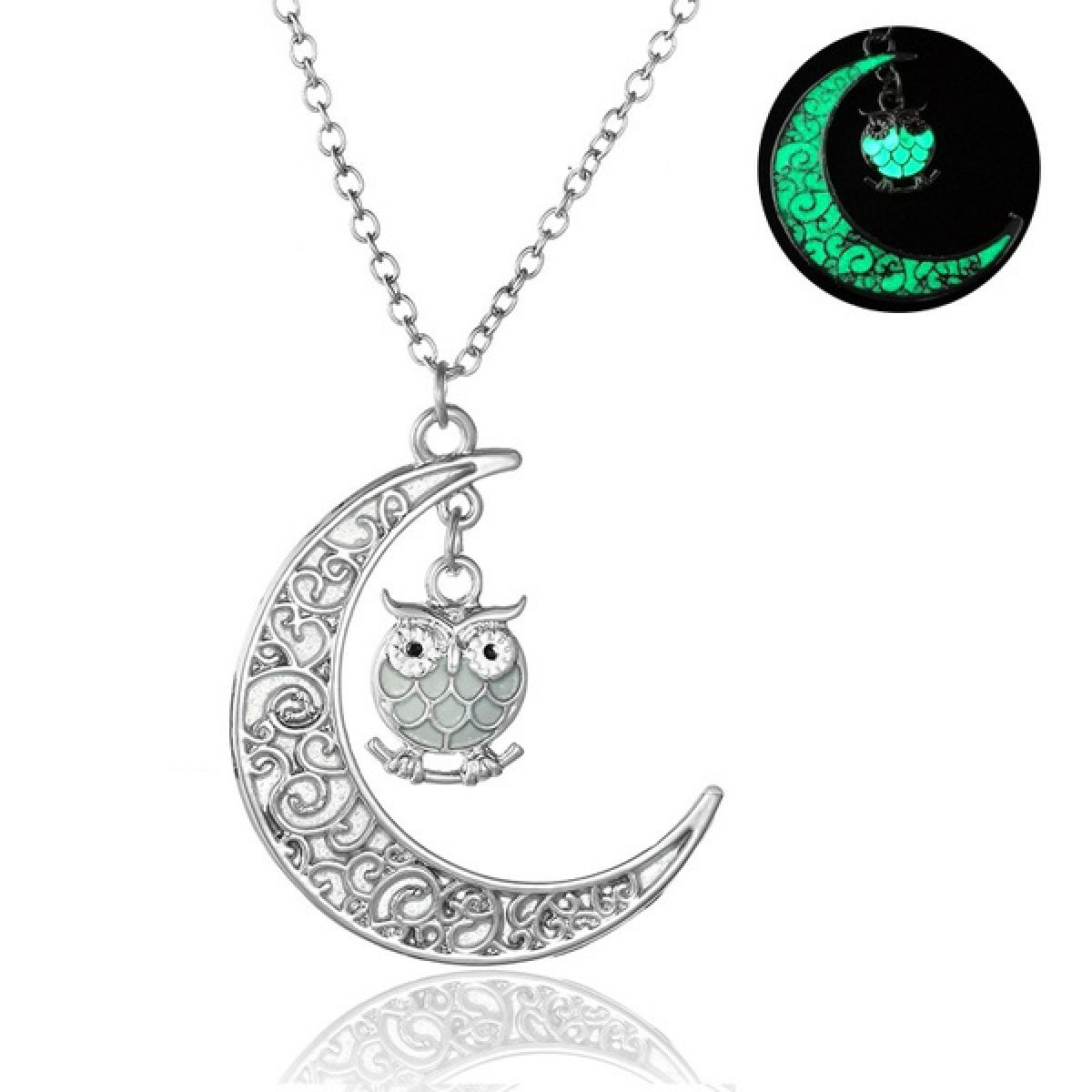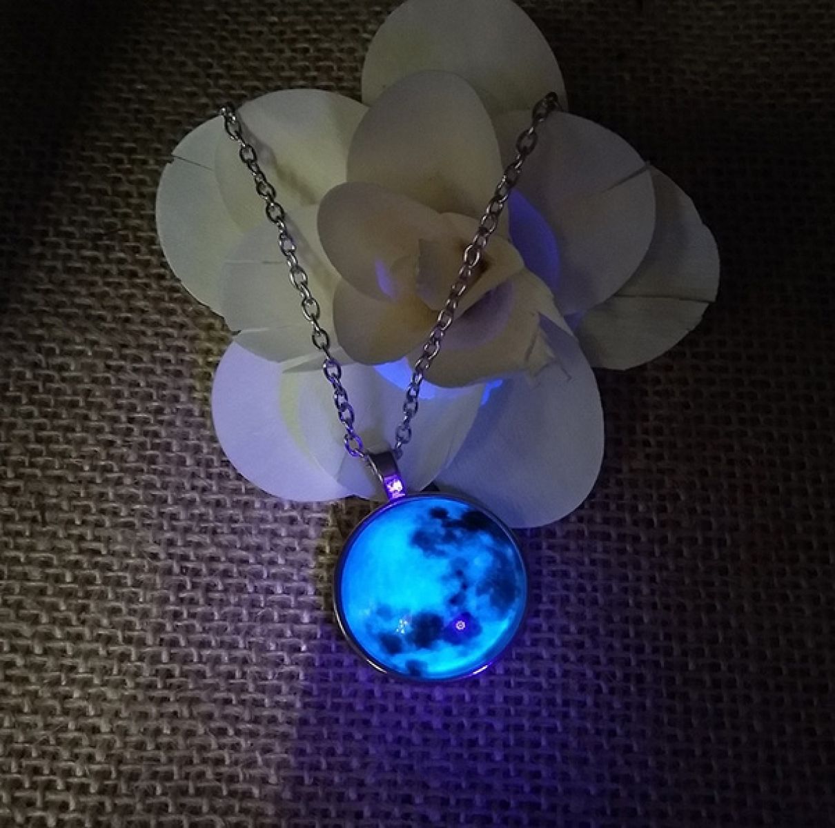 Collar plateado de cristal con luna que brilla en la oscuridad.