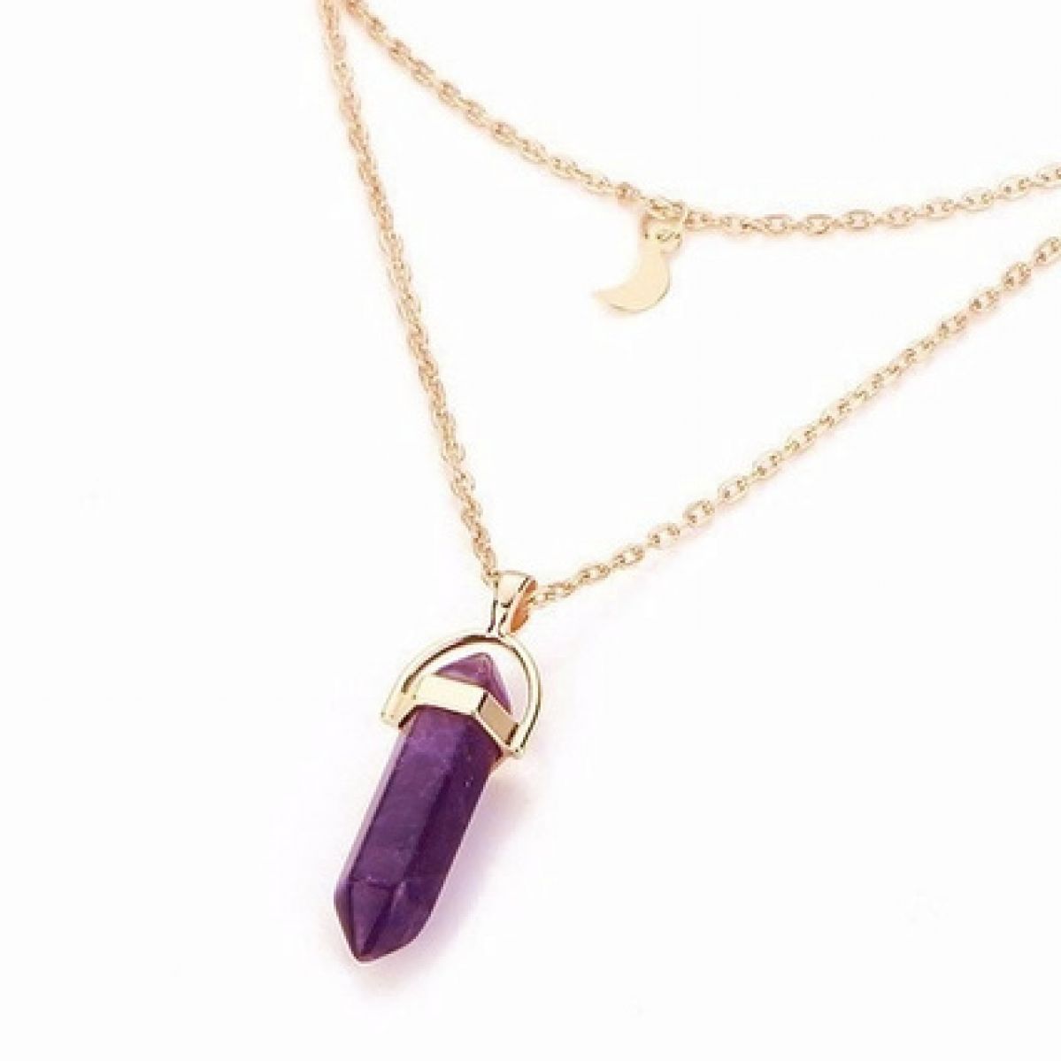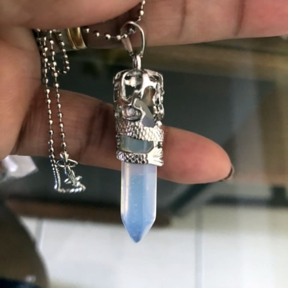 Colgante de cristal de cuarzo azul celeste hexagonal.