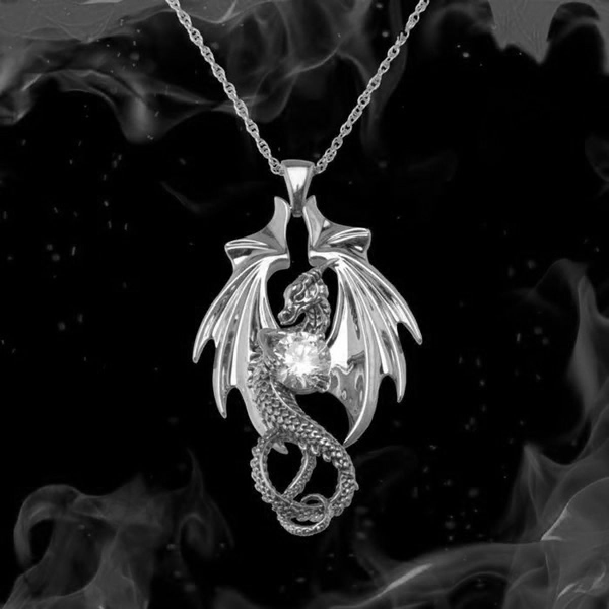 Collar de espada y dragones laterales con piedra tipo rubí.