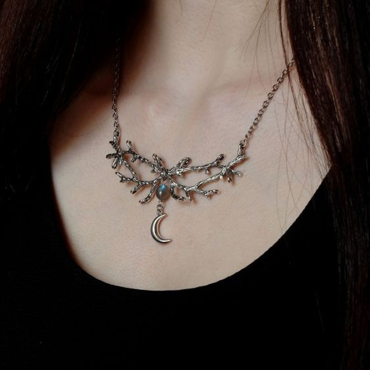 Collar con enramada de bosque esfera tornasol y luna plateada