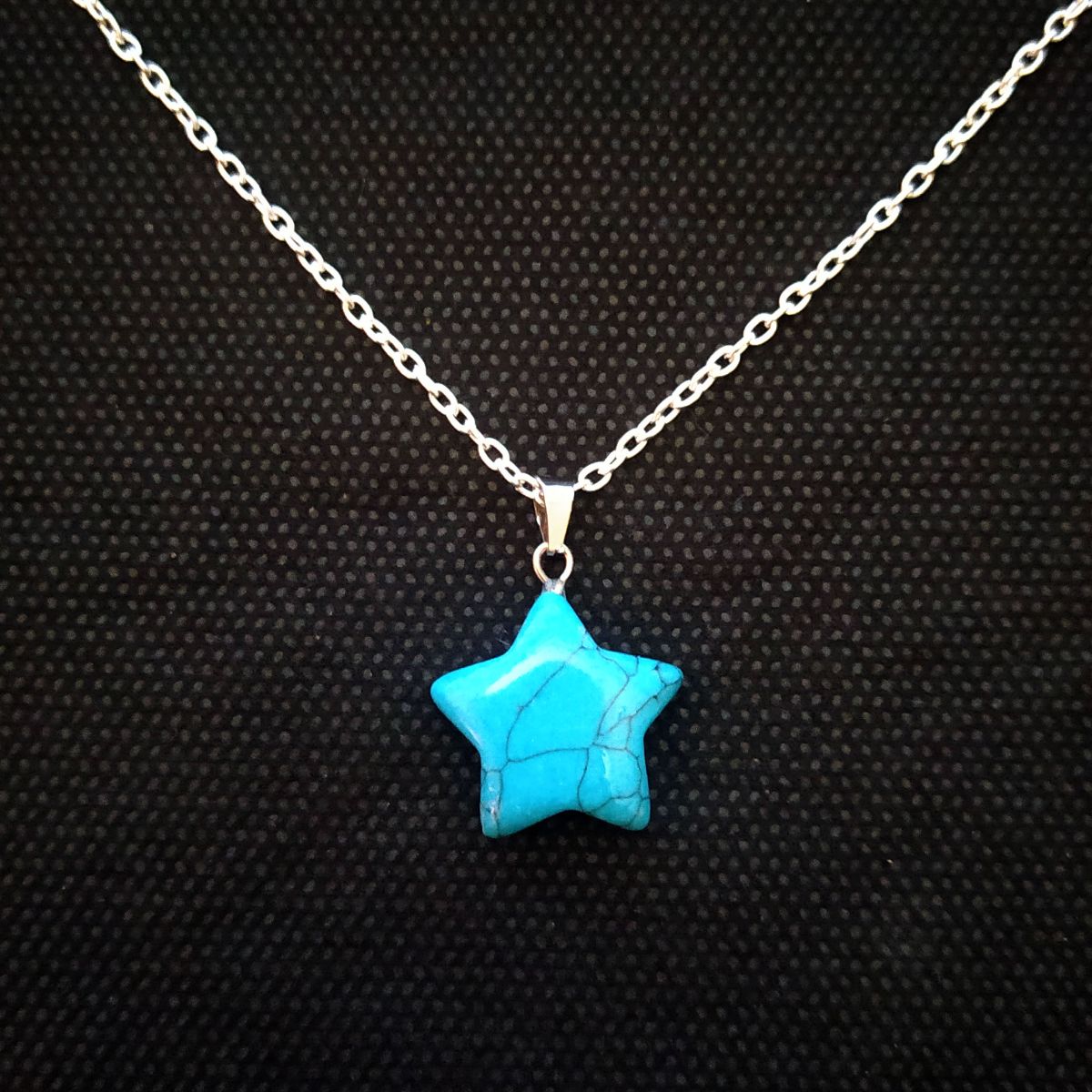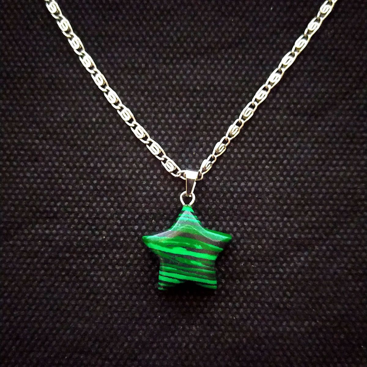 Collar con estrella de piedra natural verde esmeralda y cadena gruesa