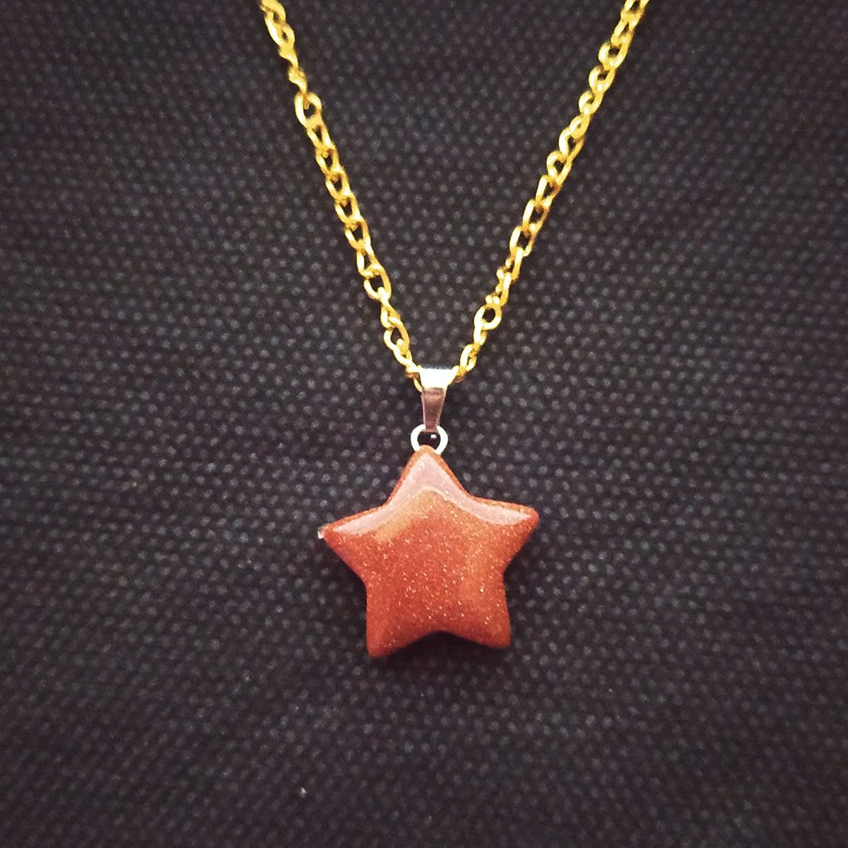 Collar con estrella de piedra natural café brillantina y cadena dorada