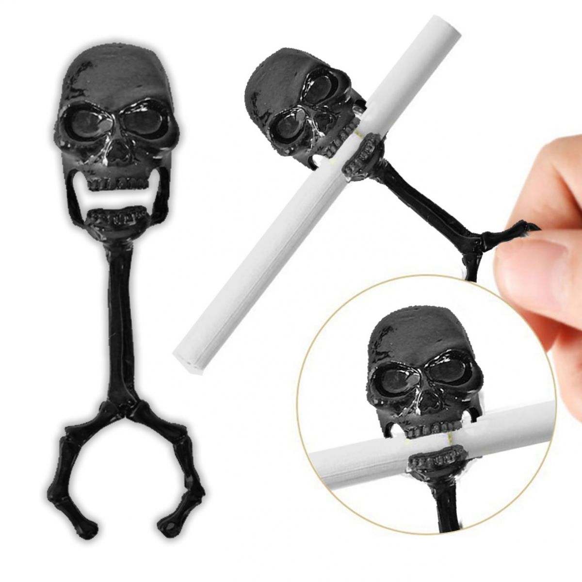 Sujetador de cigarrillo con forma de huesos y cráneo acabado en metal negro.