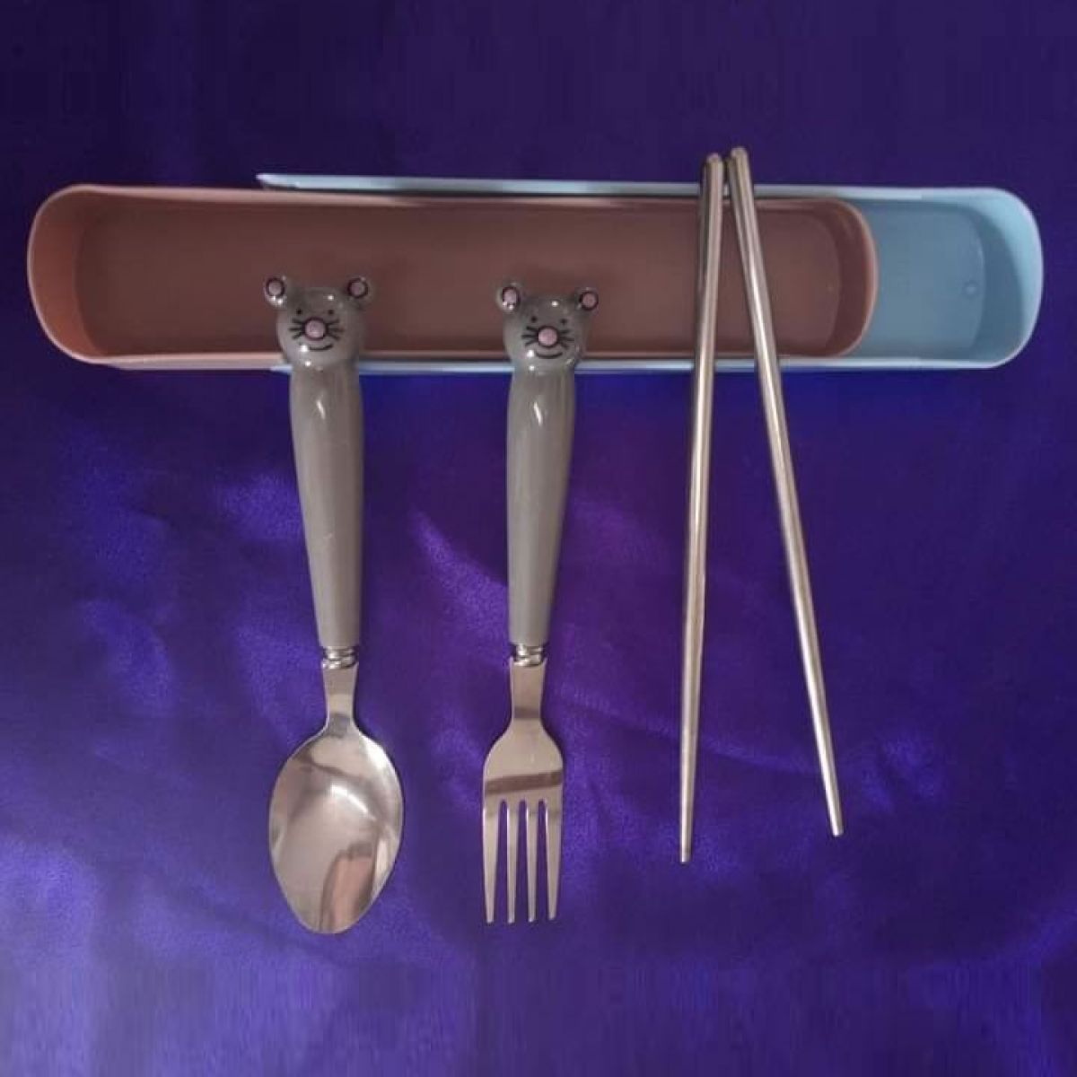 Juego de cubiertos en forma de ratón de acero acero inoxidable Cada uno contiene un tenedor una cuchara y un par de palillos chinos también una cajita para guardarlos