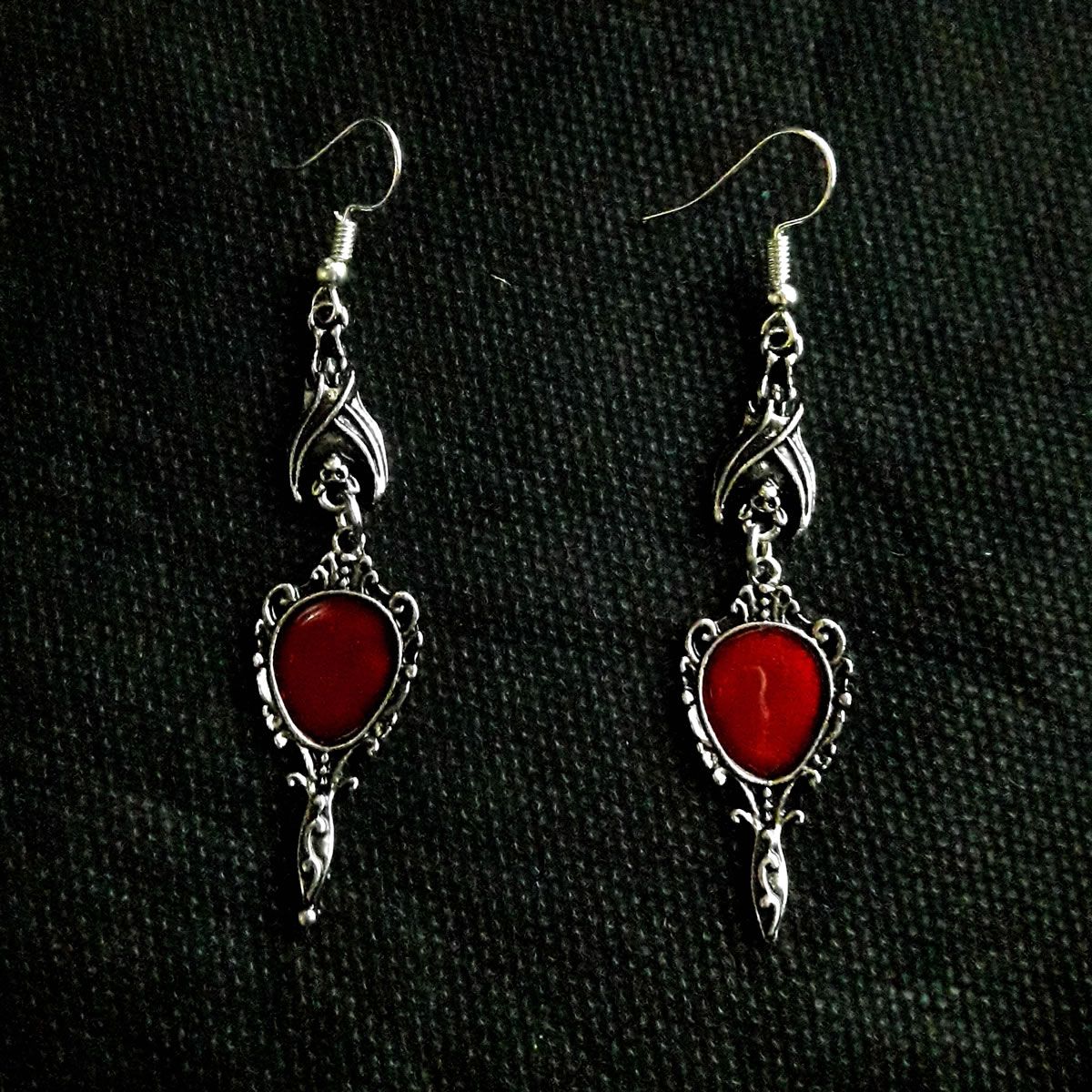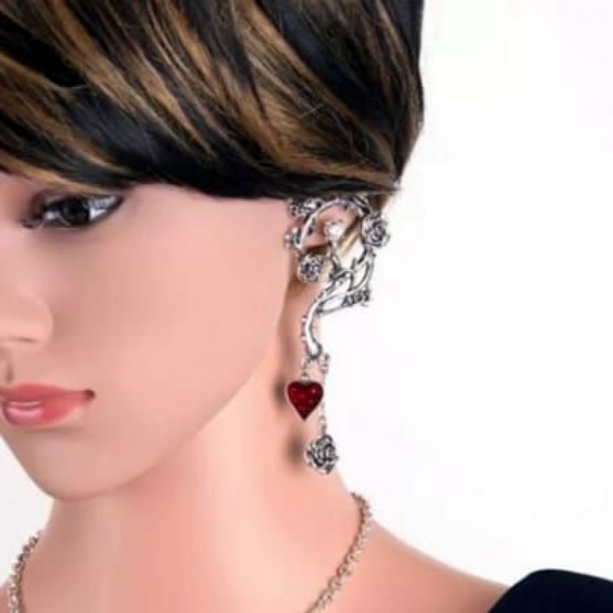Par de pendientes con corazón rojo, brillantes y rosas vintage.
