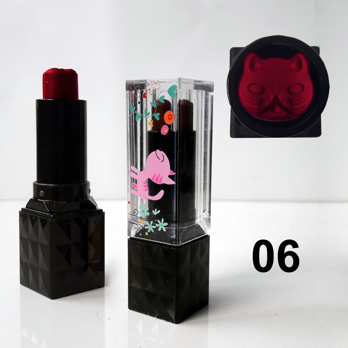 Tiene forma de gatito ❤ Color rojo carmín no.6 Acabado cremoso de larga duración.