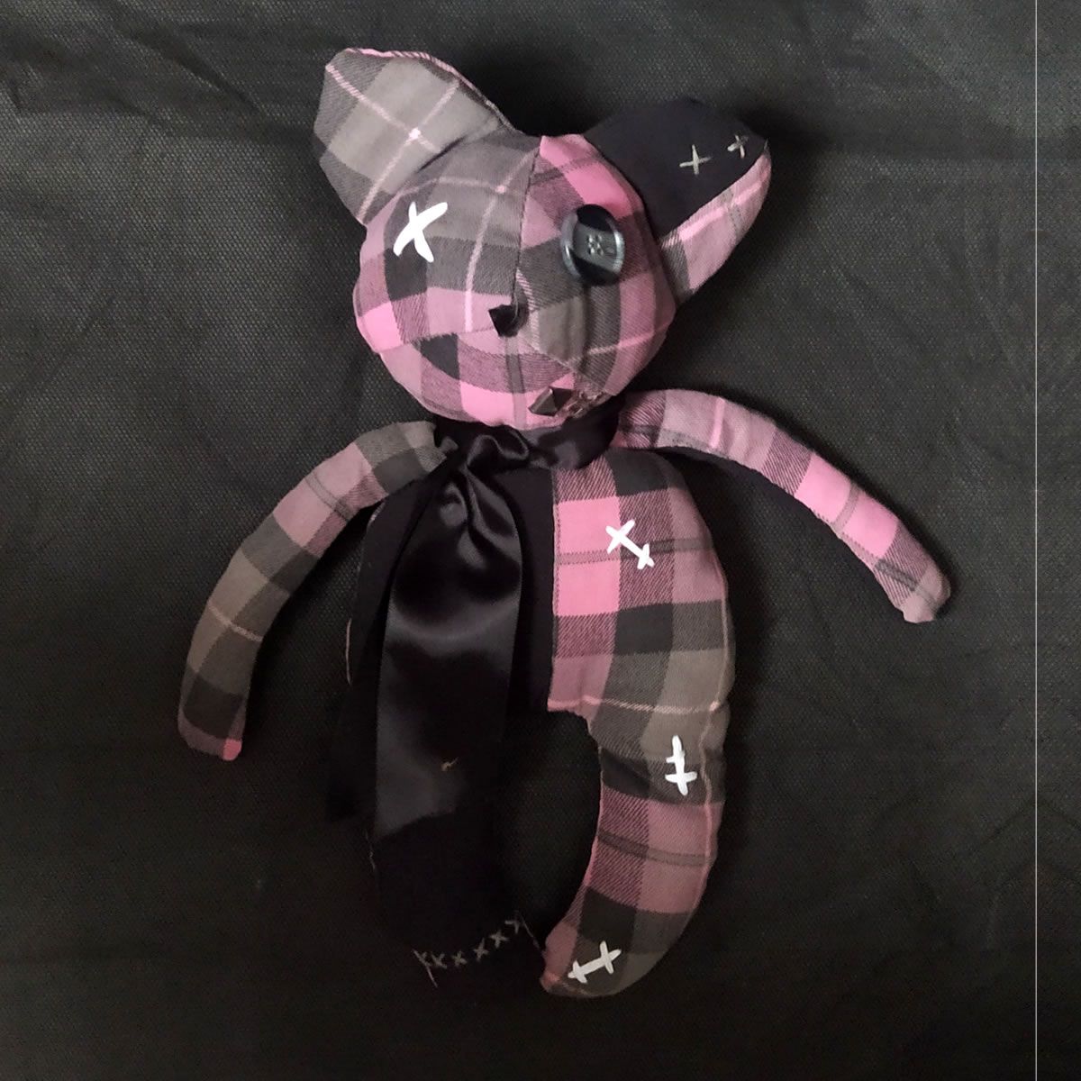 Un muñeco tierno que cuenta con una bella rosa gótica, lindo, traviezo y suavecito, en adopción, hecho artesanalmente a mano, cada personaje es único.