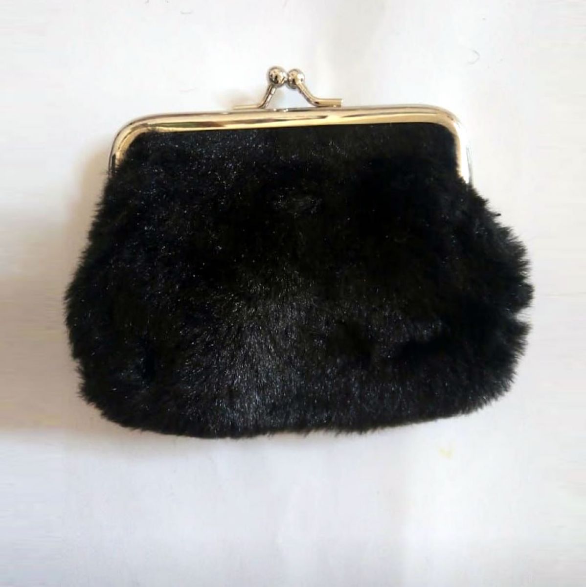 Monedero de peluche color negro.
