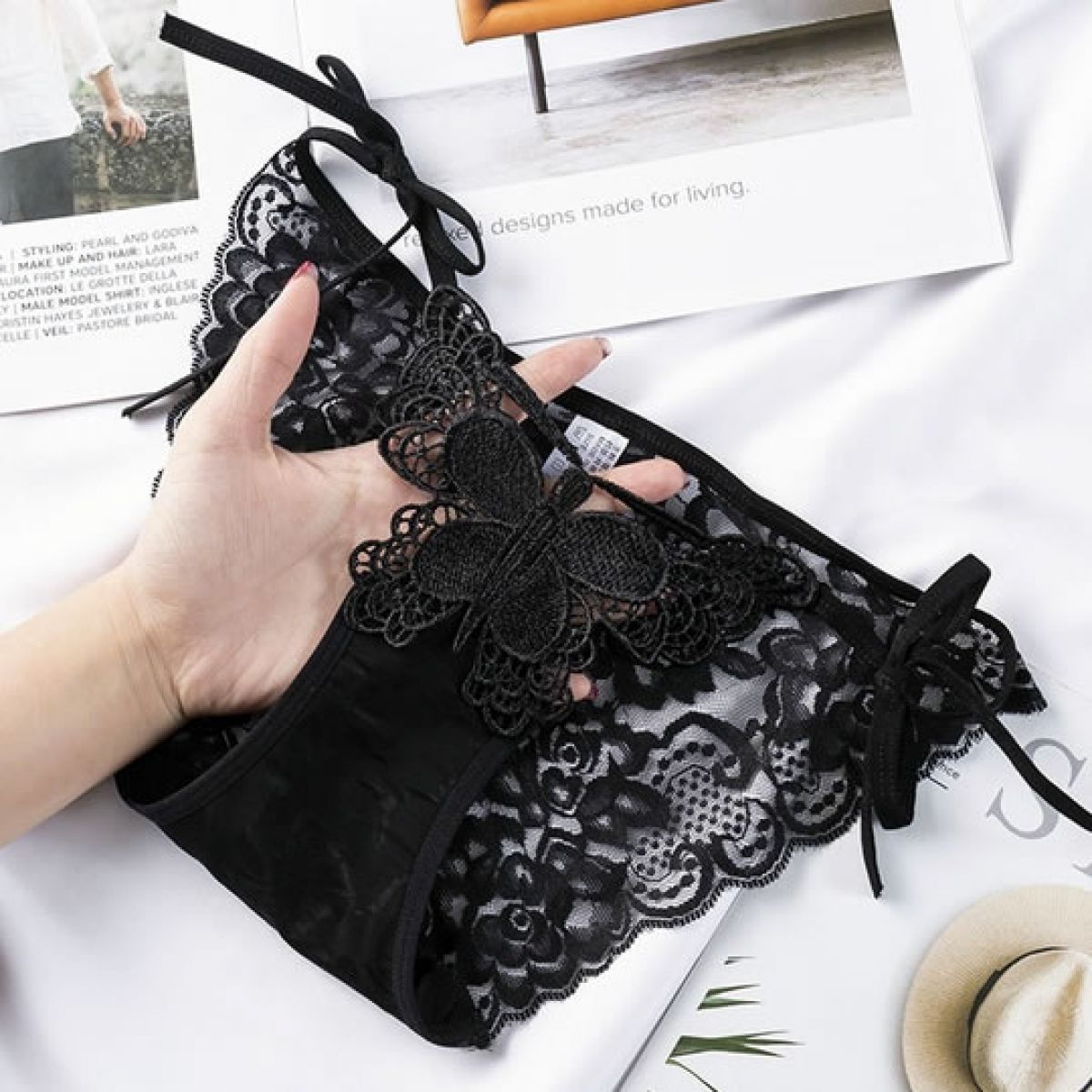 Calzones de encaje con mariposas, transparentes y delgados.